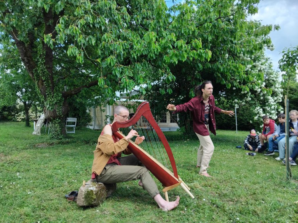 Nos spectacles sont écrits et répétés in situ, au contact du vent, des odeurs de mousse, du chant des oiseaux. Cette immersion permet aux artistes d’affiner leur écoute et de nourrir leur jeu de l’énergie propre à chaque lieu.